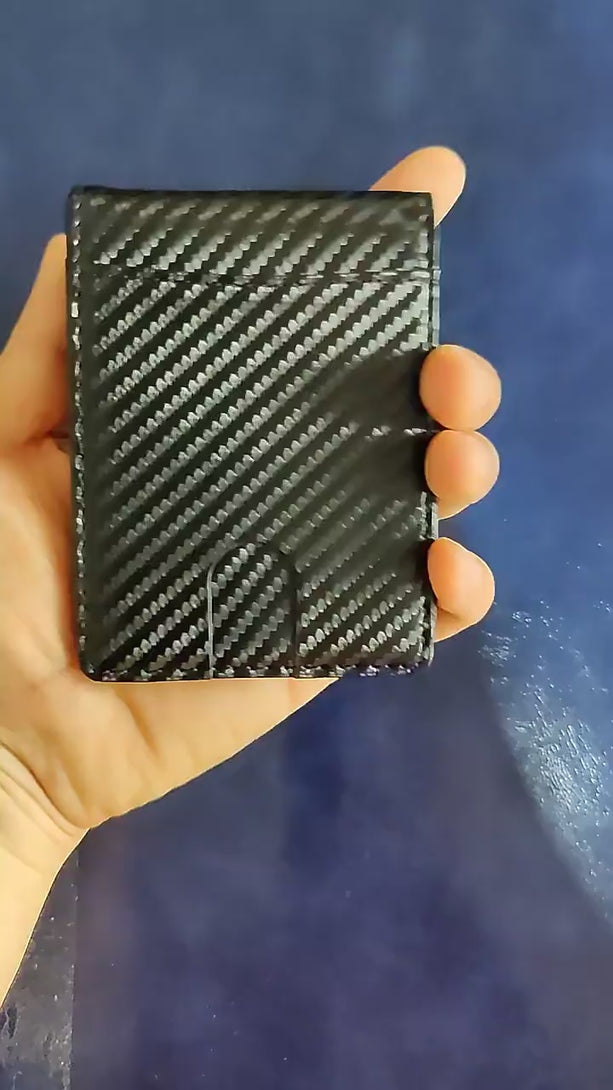 Men’s Carbon Fiber Slim Wallet – RFID Blocking Bifold with Money Clip, 6 Card Slots, ID Window